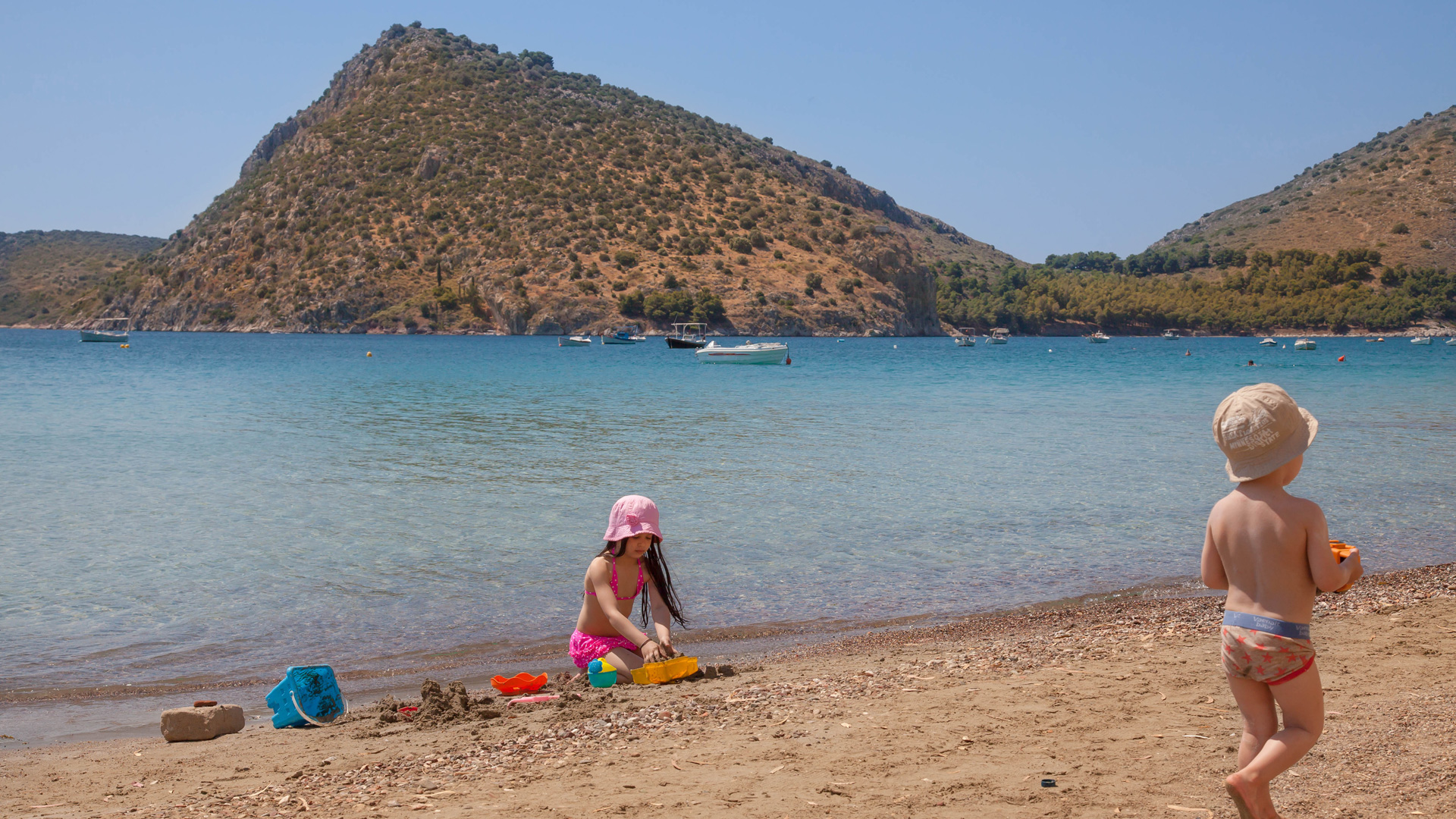 The sea in Tolo is clear, clean and warm and the gradient from shallow is very gentle therefore making it ideal for small children and the not so strong swimmer.